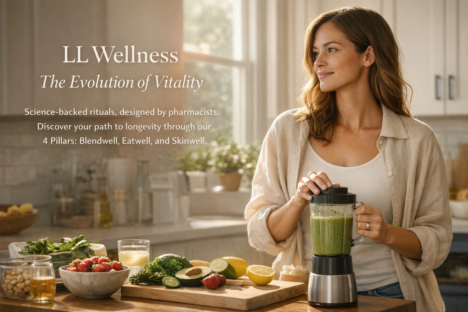 Elevate your daily ritual with the LL Wellness app—a holistic ecosystem designed to help you redefine your radiance and vitality. Built on our four core pillars—Blendwell, Eatwell, Livewell, and Skinwell—this app becomes your daily guide to modern longevity.